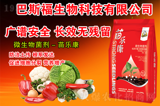 巴斯福生物科技有限公司-苗樂(lè)康,是巴斯福公司引進(jìn)國(guó)際微生物技術(shù),經(jīng)特殊培養(yǎng)和發(fā)酵精心研制而成的新型微生物菌劑,具有廣譜、、長(zhǎng)效、等特點(diǎn),是目前綜合預(yù)防作物根部病害和根結(jié)線蟲(chóng)的理想制劑。