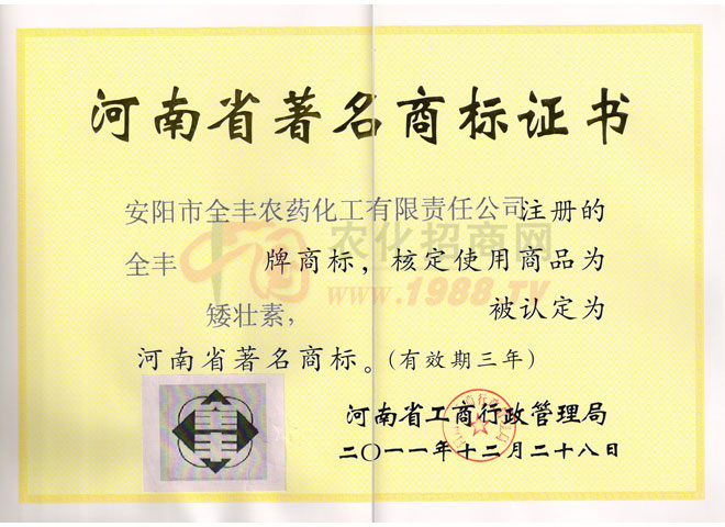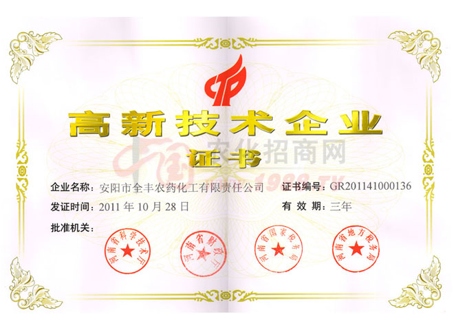 安陽全豐生物科技有限公司于1997年成立,主要從事農(nóng)藥產(chǎn)品的生產(chǎn)和經(jīng)營,是國家定點農(nóng)藥生產(chǎn)廠家,“矮壯素”產(chǎn)品行業(yè)標準起草單位。公司經(jīng)過十年的艱苦發(fā)展歷程,已經(jīng)發(fā)展成為集科研、原藥生產(chǎn)、復配加工、內(nèi)外貿(mào)易于一體的大中型股份制企業(yè)。
